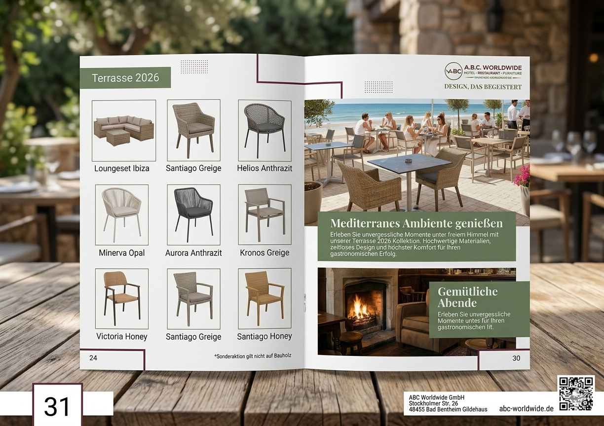 Möchten Sie Ihr Restaurant oder Hotel neu einrichten? Oder benötigen Sie lediglich zusätzliche Möbel? Dann sind Sie bei ABC Worldwide genau richtig. Wir sind Ihr zuverlässiger Partner für die Gastronomie- und Objekteinrichtung.