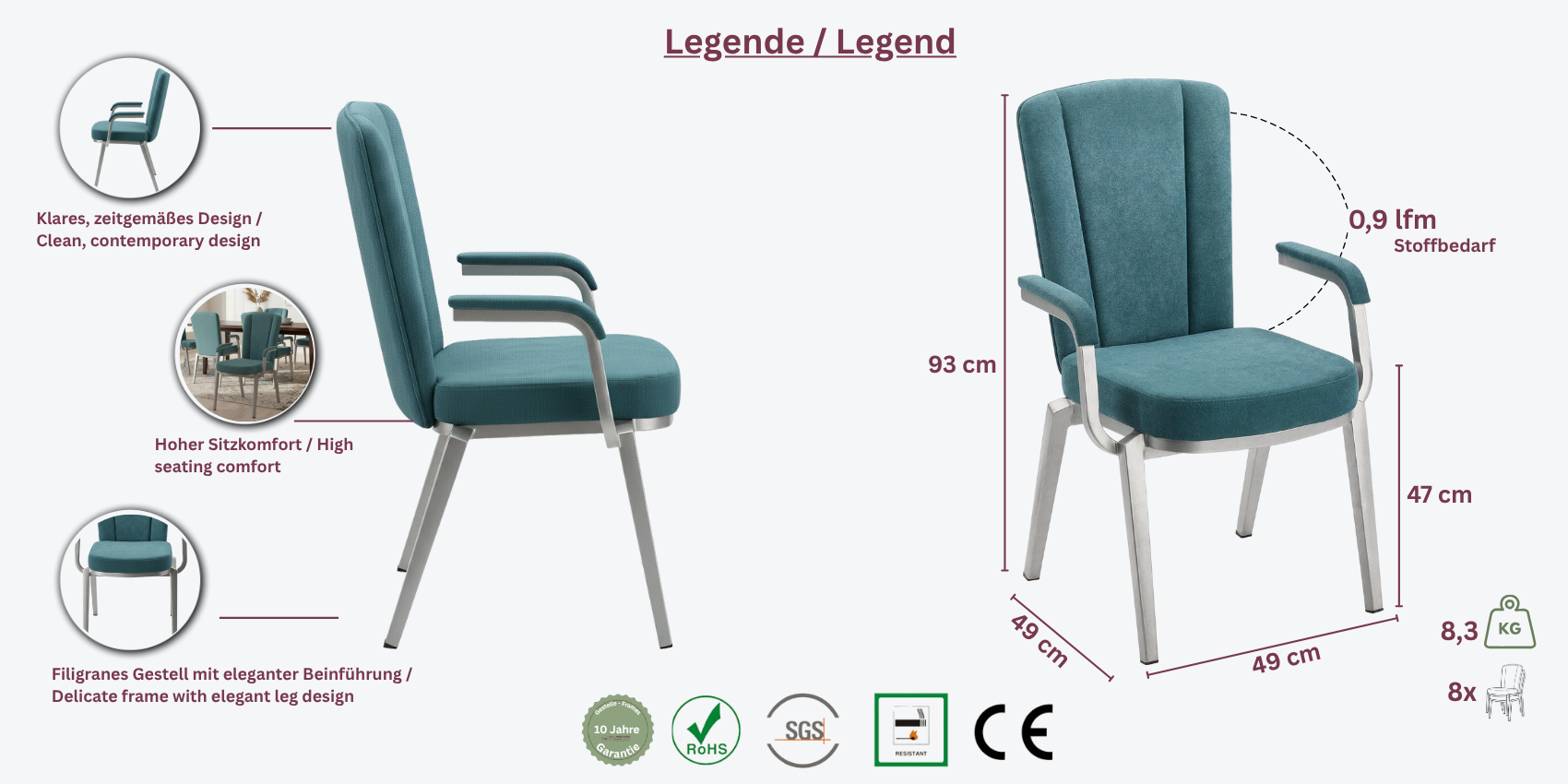 - Stapelbar: Der Bankettstuhl ist stapelbar und somit platzsparend und einfach zu lagern.