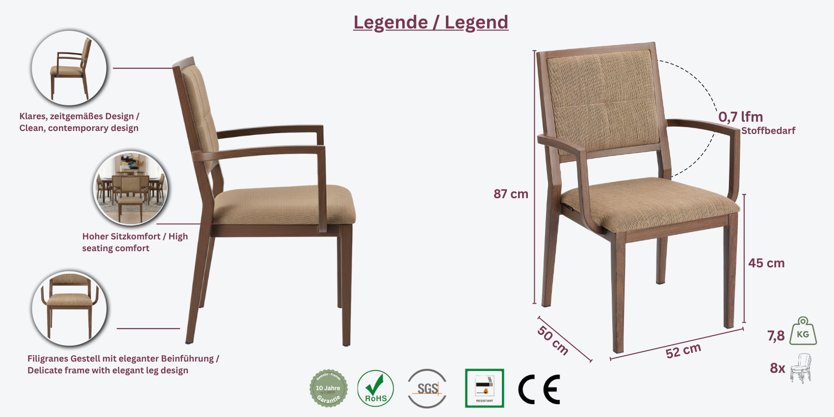 - Stapelbar: Der Stuhl ist stapelbar und ermöglicht eine platzsparende Lagerung und einfache Handhabung.