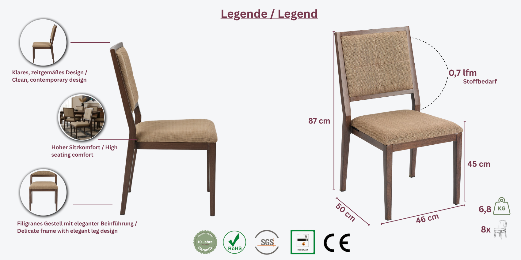 - Stapelbar: Der Stuhl ist stapelbar, was eine platzsparende Lagerung und einfache Handhabung ermöglicht.