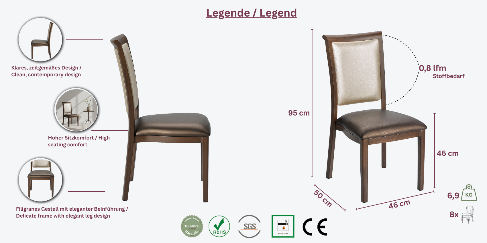 - Stapelbar: Der Stuhl ist stapelbar, was eine einfache Lagerung und Handhabung ermöglicht.