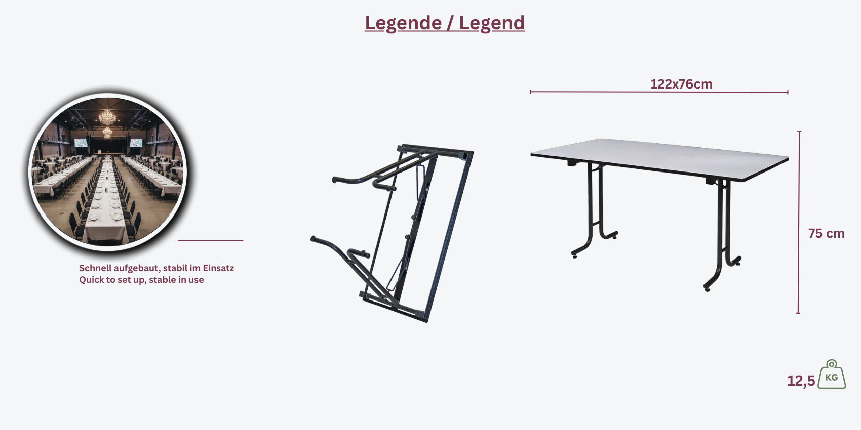Der Banketttisch Optima Molton ist eine praktische Lösung für Ihre Veranstaltungen, bei der Sie die Moltonauflage dank der weichen Kunststoffbeschichtung sparen können. Der Tisch ist klappbar und daher besonders platzsparend und einfach zu verstauen.