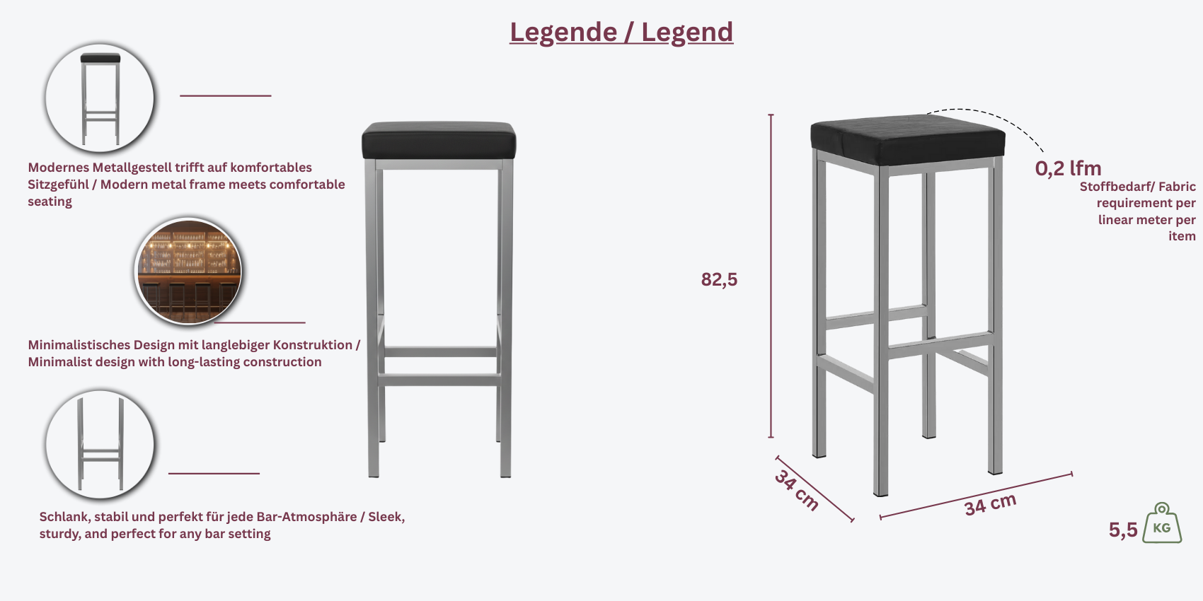 Der Barhocker Angolo kombiniert modernes Design mit komfortabler Funktionalität. Das Edelstahlgestell, poliert und mit einem praktischen Fußtritt, sorgt für eine stabile Basis. Der Sitz aus hochwertigem schwarzem PU-Leder bietet sowohl Stil als auch Komfort.