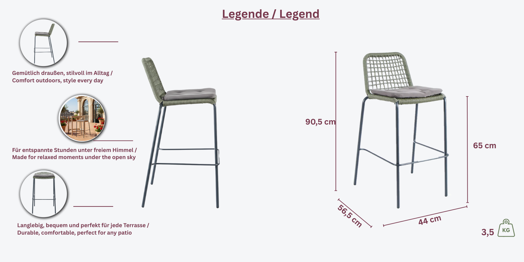 Mit dem Aurora Opal Barhocker setzen Sie auf zeitlose Eleganz und Komfort für Terrasse, Garten oder Innenräume!