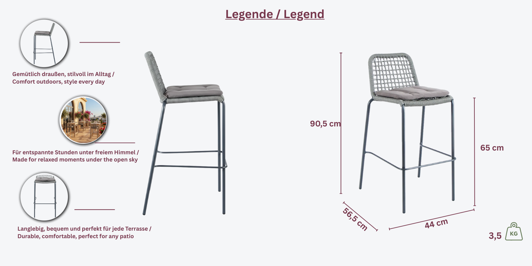 Mit dem Aurora Anthrazit Barhocker setzen Sie auf Komfort und Stil für Ihre Terrasse, Garten oder Indoor-Bereich!