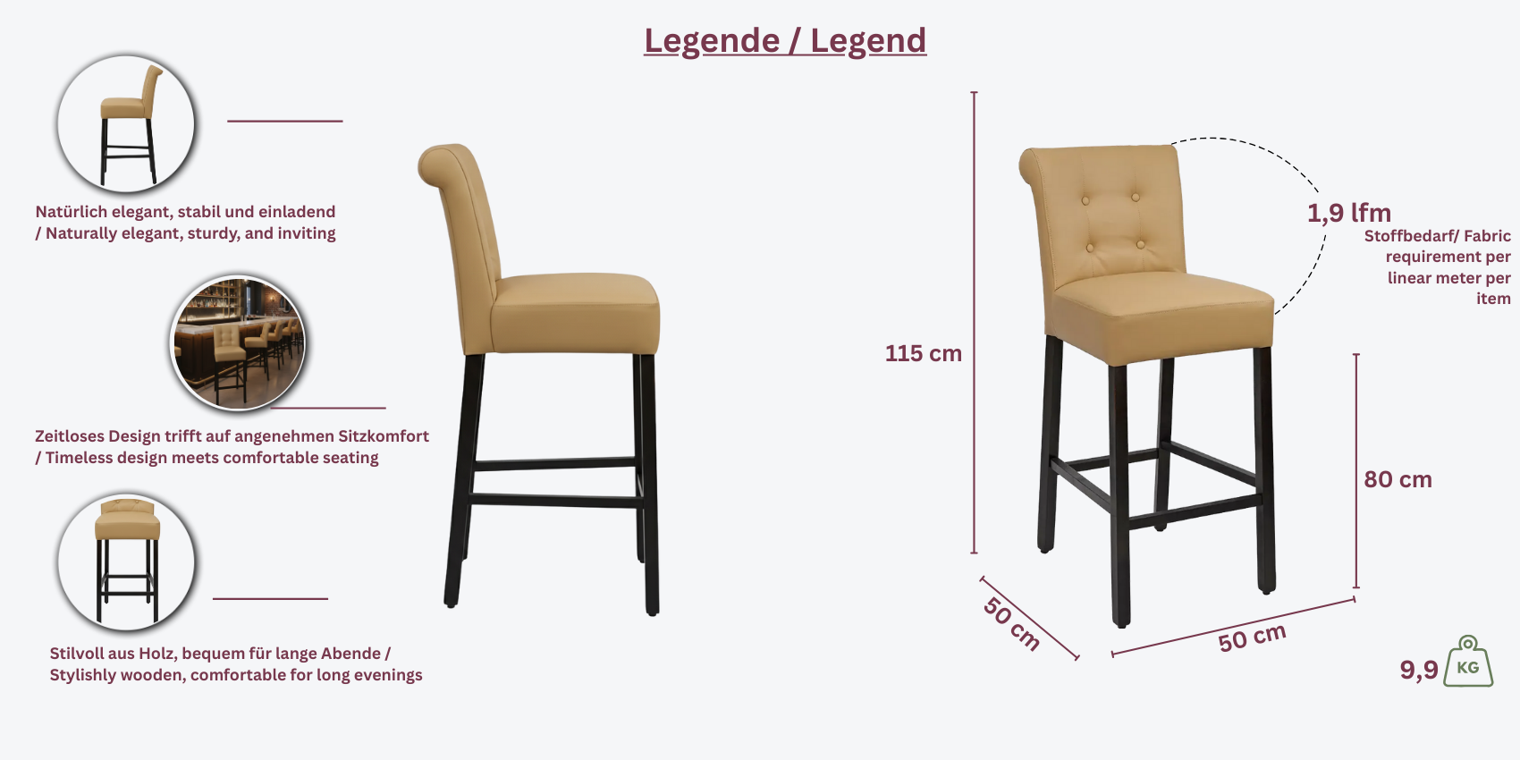 Der Worldwide Seating Barhocker Bellevue vereint klassische Eleganz und modernen Komfort. Mit seinem stilvollen Design, das durch eine edle Knopfheftung und eine Nosag-Federung für zusätzlichen Sitzkomfort sorgt, ist er ein Highlight in jeder Bar, Lounge oder Ihrem Essbereich. Dieser Barhocker eignet sich perfekt für anspruchsvolle Einrichtungen, die Wert auf Stil und Bequemlichkeit legen.