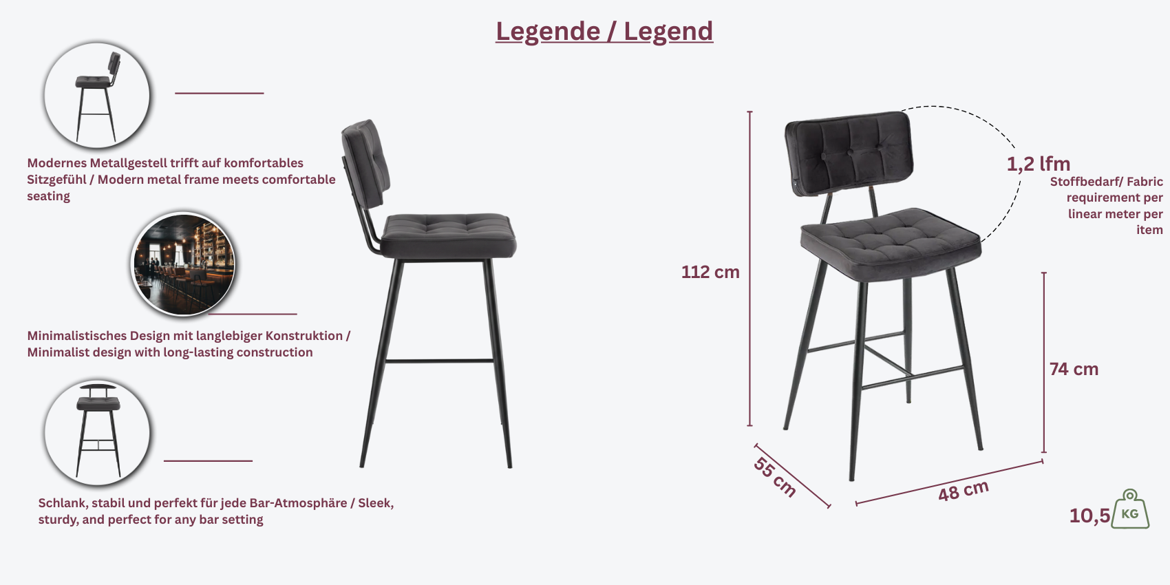 Der Barhocker Bradford Button vereint modernes Design mit praktischem Komfort und ist die perfekte Ergänzung für jede Bar oder Kücheninsel.