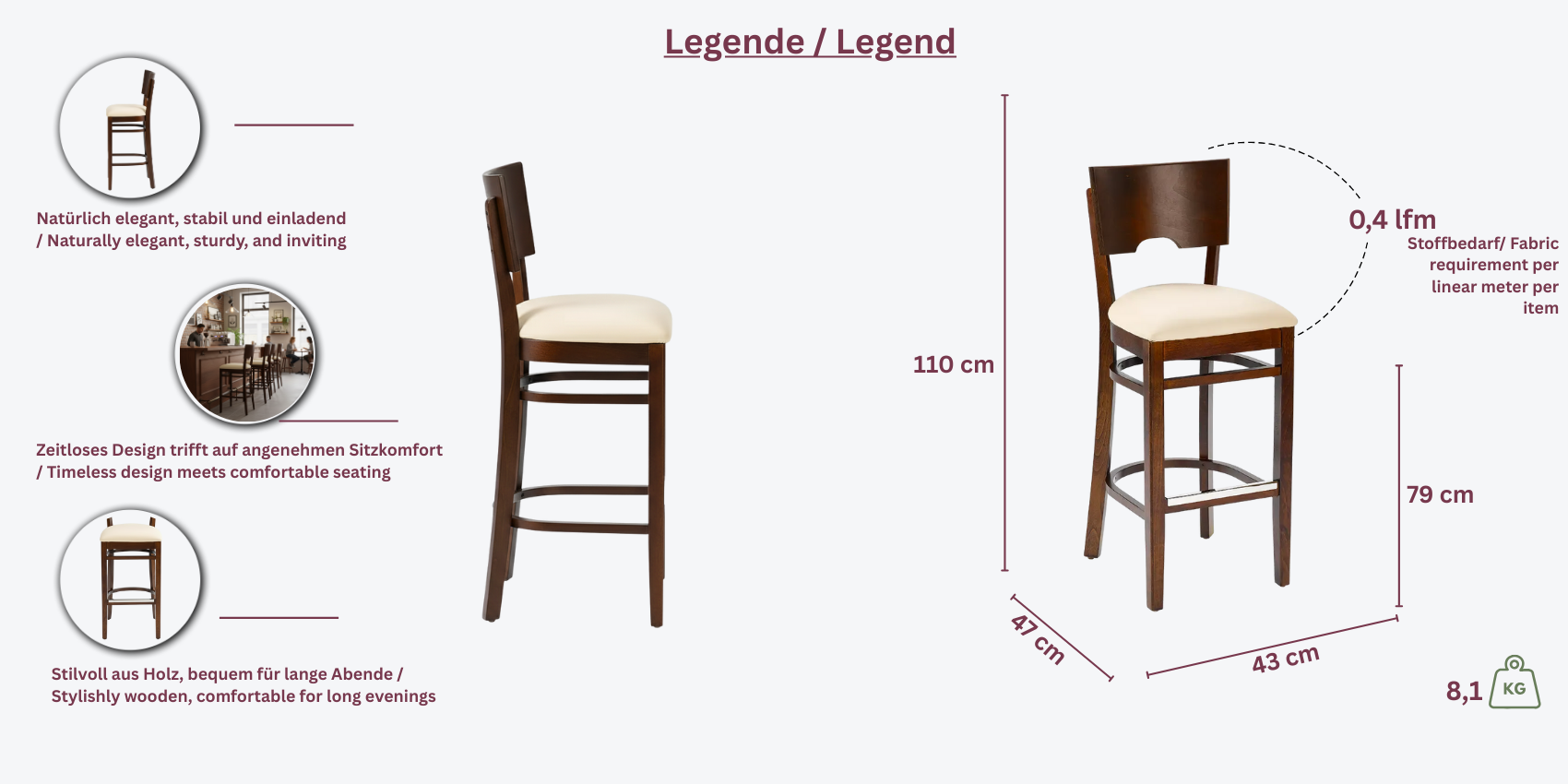 Der Barhocker Clara vereint stilvolles Design und praktische Funktionalität. Ideal für moderne Bars, Küchen oder Essbereiche.