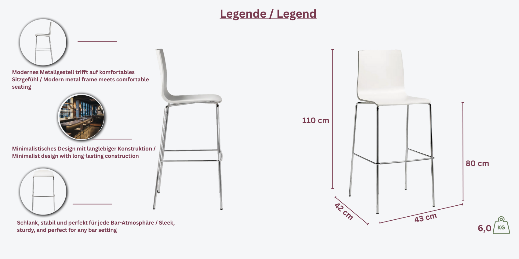 Der Barhocker Contanti überzeugt mit einem verchromten Stahlgestell und einer Polypropylenschale, die in den Farben Weiß, Braun oder Grau erhältlich ist. Dieser Hocker ist stapelbar und bietet so praktische Vorteile für die Aufbewahrung, wenn er nicht in Gebrauch ist. Ideal für Gastronomie und Events!