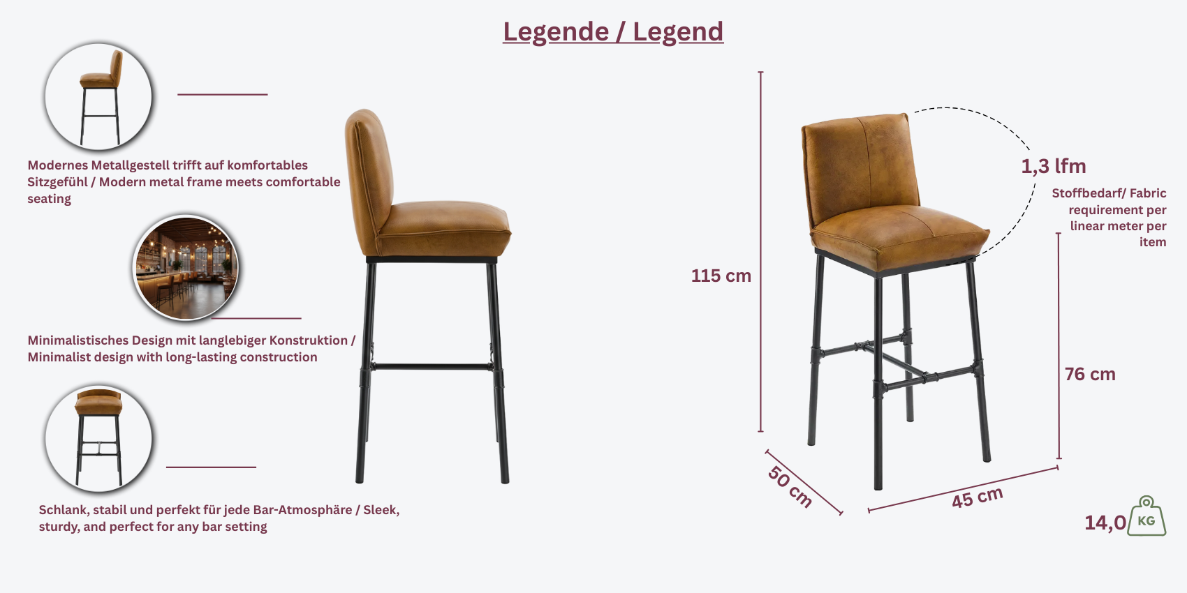 Der Barhocker Douglas besticht durch ein robustes Stahlgestell, das pulverbeschichtet ist, und bietet eine komfortable Sitzgelegenheit mit einer Wahl von Bezugsstoffen: Kunstleder oder Echtleder. Besonders hervorzuheben ist die Nosag-Federung, die für extra Komfort sorgt, ideal für längeres Sitzen. Der Hocker ist sowohl funktional als auch ästhetisch ansprechend, perfekt für Bars und moderne Küchen.