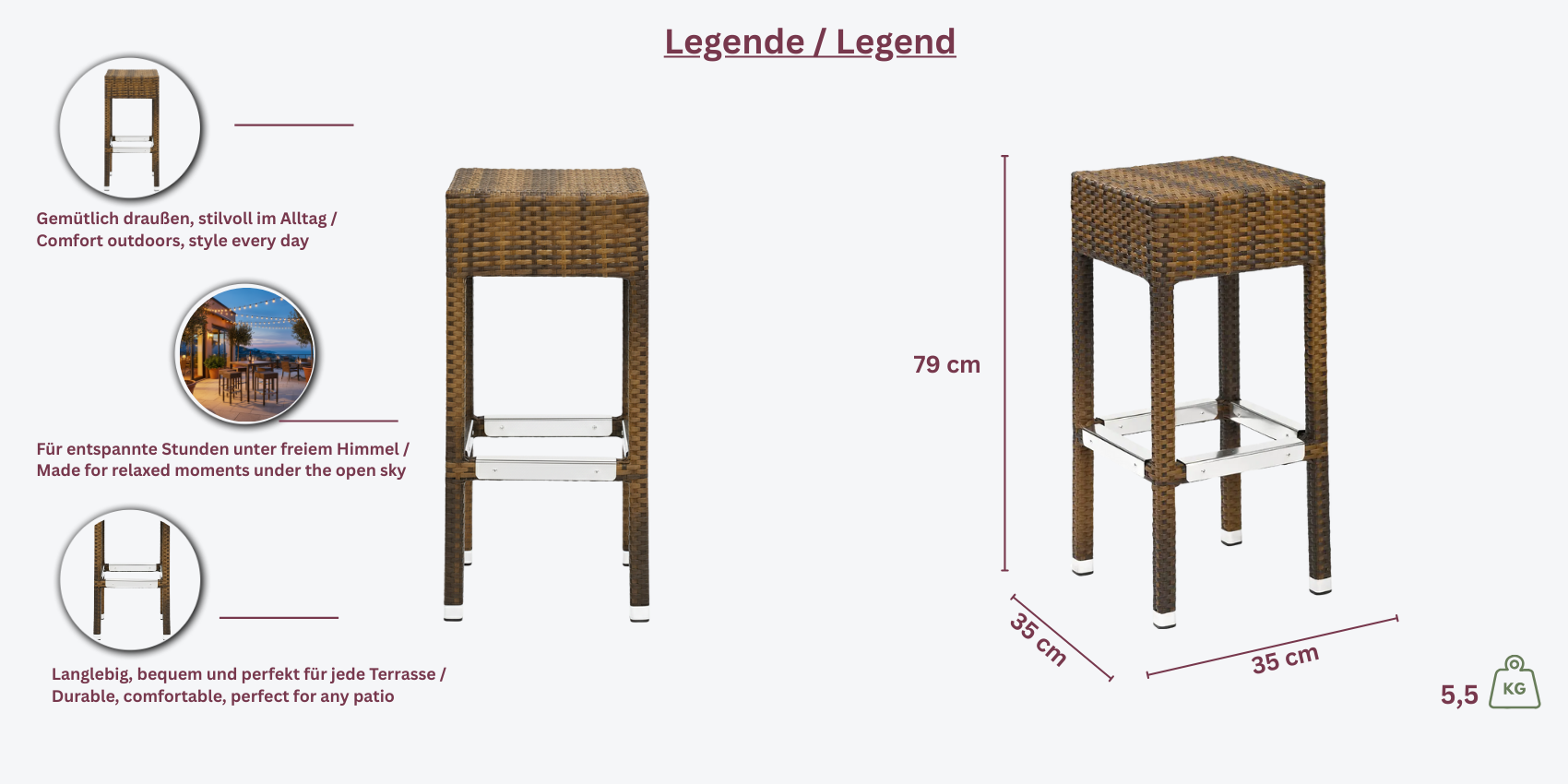 Der Barhocker Inca Burned kombiniert funktionales Design mit hochwertigem Material – ideal für Ihren Outdoor-Bereich.