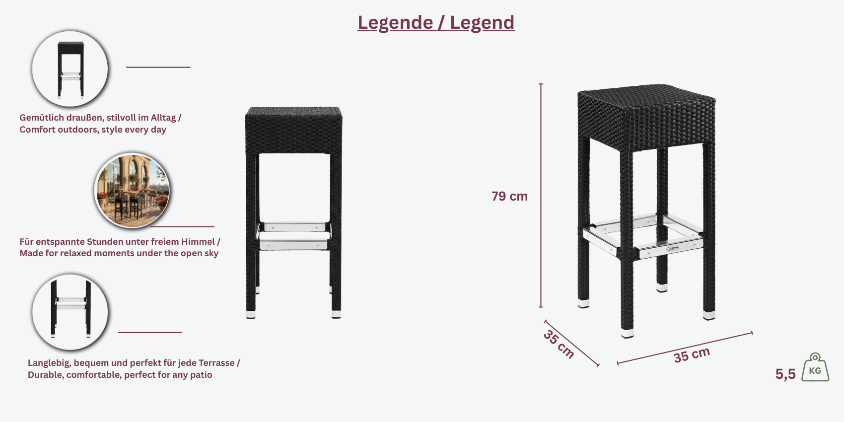 Der Inca Schwarz Barhocker ist die perfekte Wahl für eine elegante und funktionale Ausstattung Ihrer Terrasse oder Outdoor-Bar!
