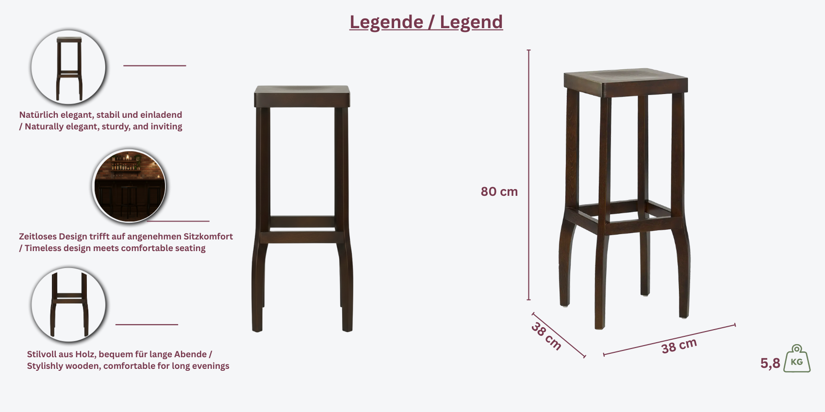 • Sitzhöhe: 80 cm