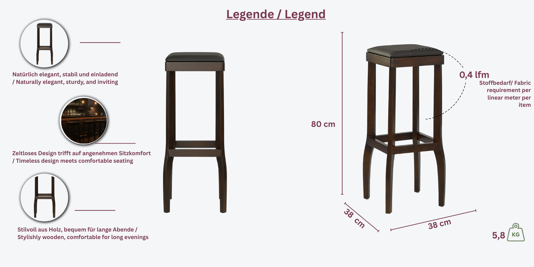 Der Worldwide Seating Barhocker Jake besticht durch sein elegantes Design und komfortable Polsterung. Er ist in Nussbaum dunkel erhältlich und bietet Sitzoptionen aus Kunstleder, Bezugsstoff oder Echtleder.