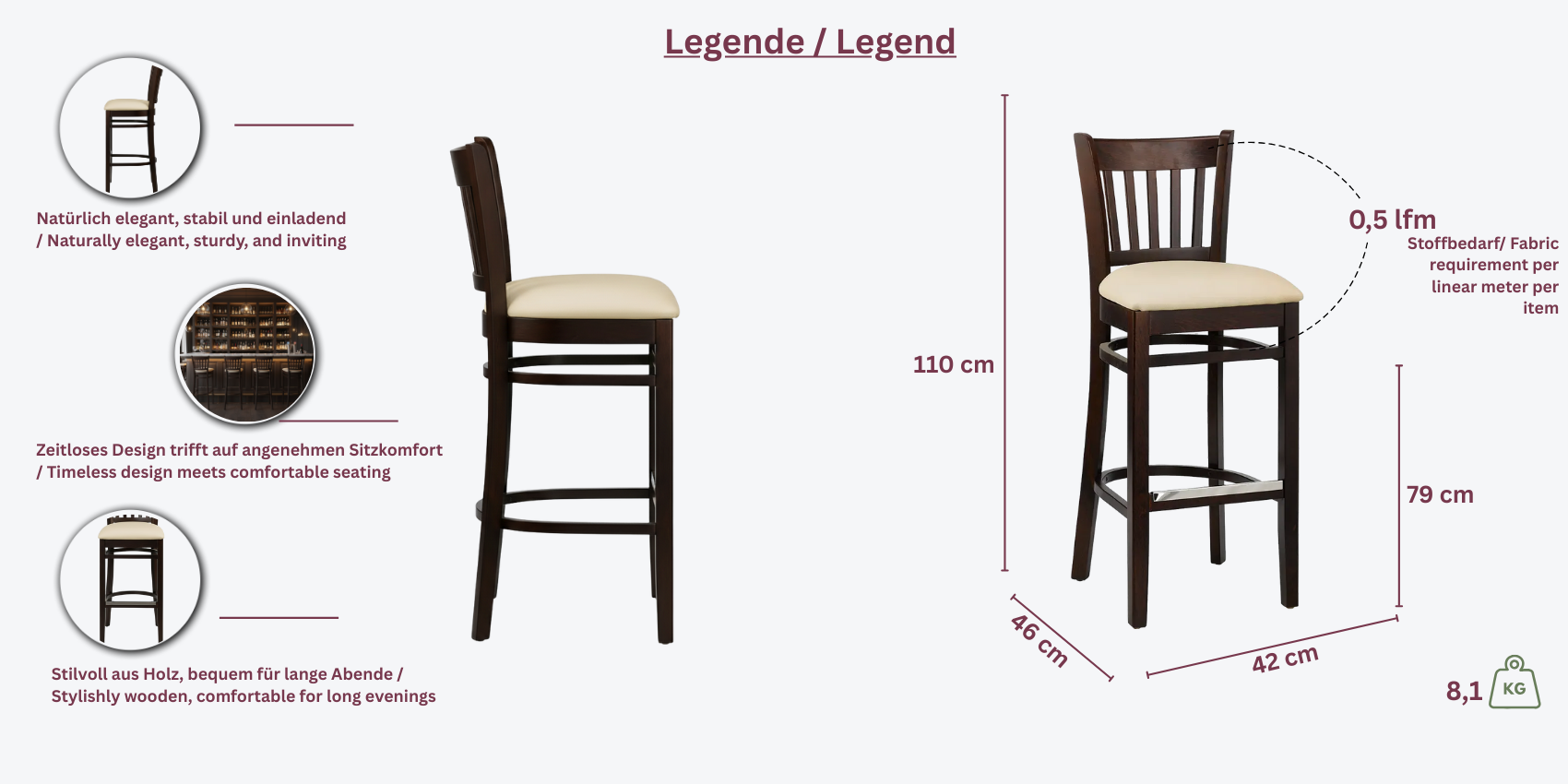 • Sitzfläche: 42 x 42 cm