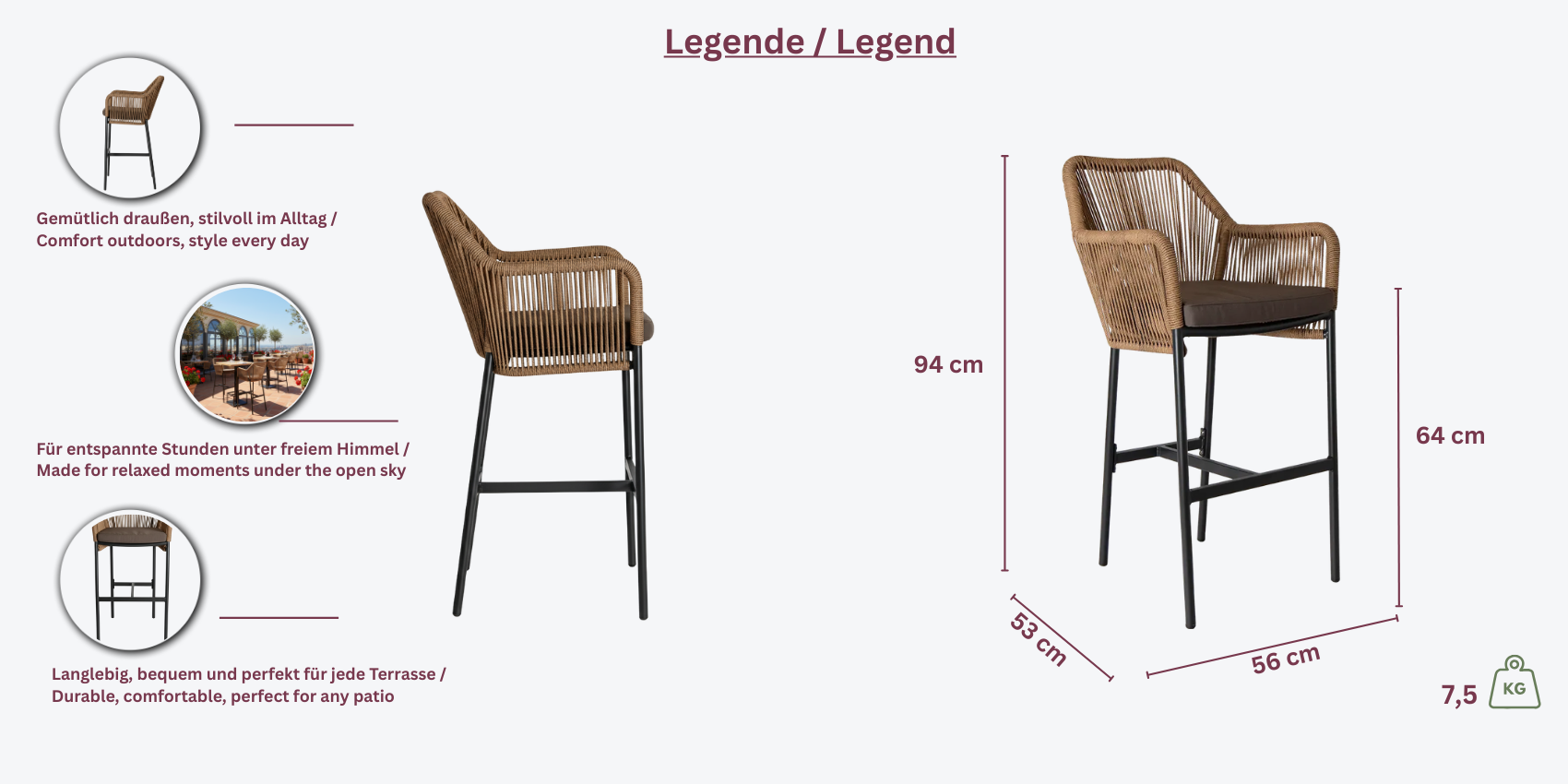 - Sitzhöhe: 79 cm – ideal für gemütliches Sitzen an hohen Tischen oder Bars.