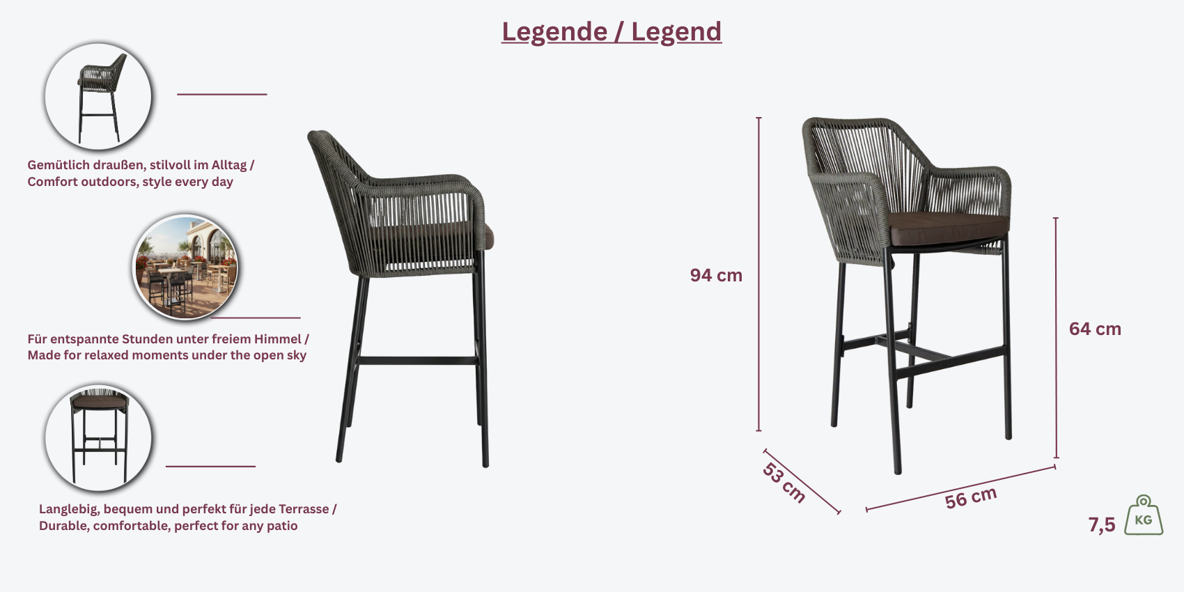 Mit dem Minerva Anthrazit Barhocker setzen Sie auf zeitlose Eleganz und Komfort für Terrasse, Garten oder Innenräume!