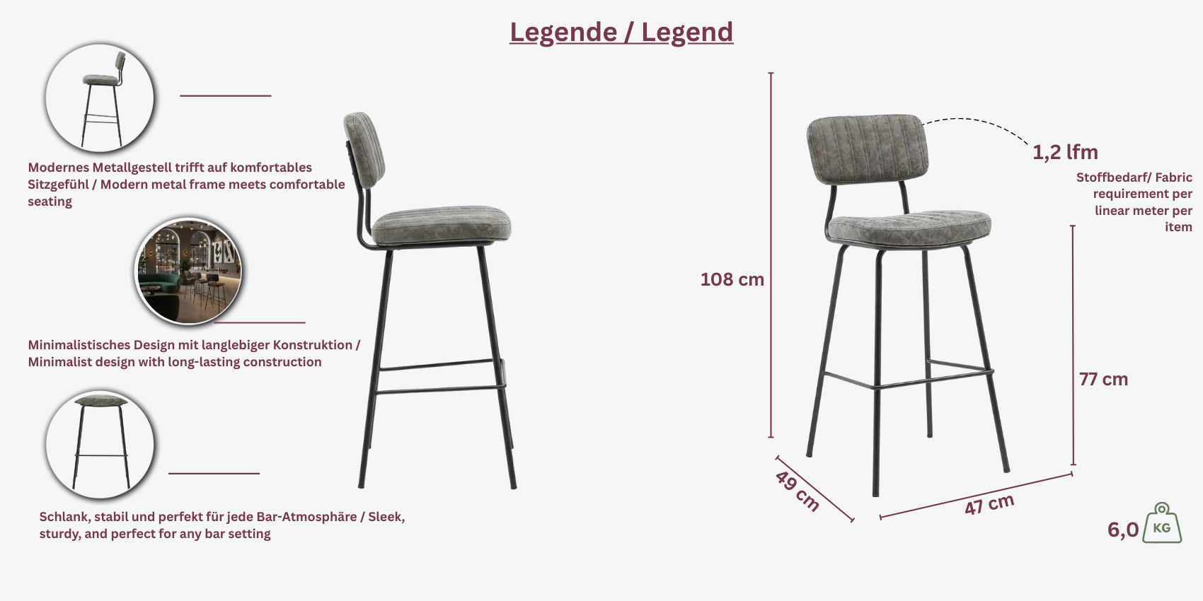 Verwandeln Sie Ihre Bar in einen stilvollen Treffpunkt und genießen Sie höchsten Komfort mit dem Barhocker Oliver. Bestellen Sie noch heute bei A.B.C. Worldwide!