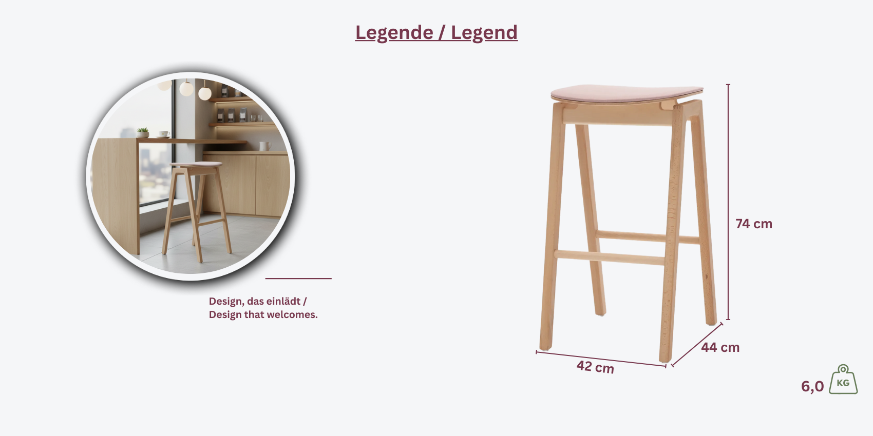 - Vielseitigkeit: Der Barhocker passt sowohl in private Küchen und Balkone als auch in professionelle Bars, Restaurants und Lobbys.