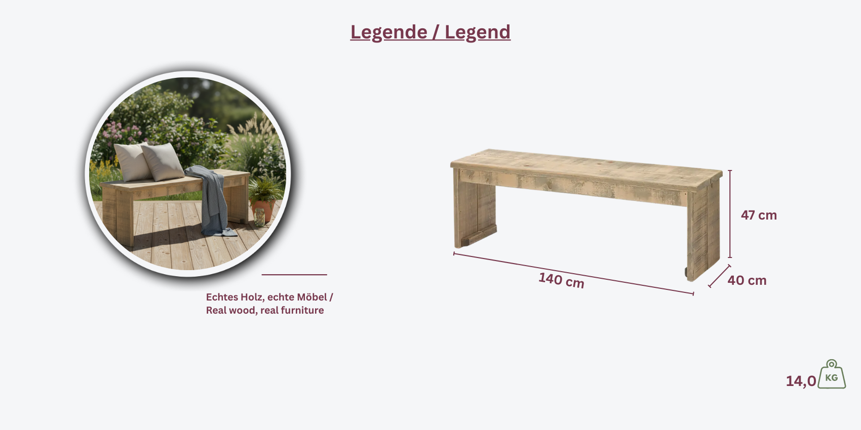 - Stabilität und Langlebigkeit: Dank des massiven Bauholzes ist die Bank robust und langlebig, ideal für den langfristigen Gebrauch.