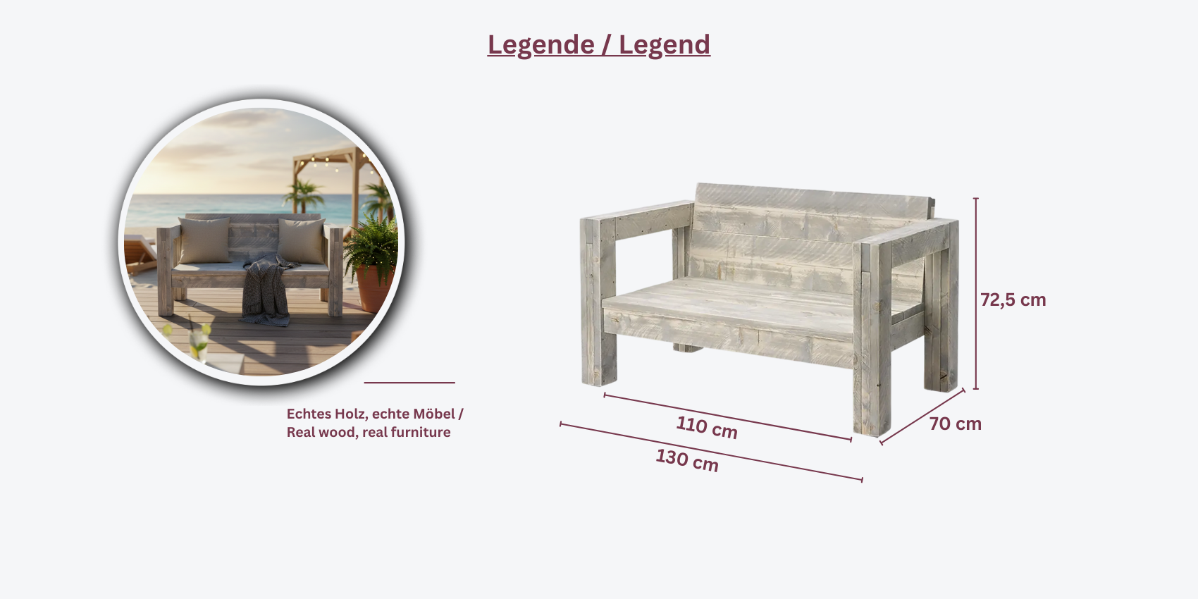 - Vielseitig einsetzbar: Perfekt für Wohnzimmer, Garten, Terrasse oder Wintergarten – die Bauholz Lounge fügt sich harmonisch in verschiedene Umgebungen ein.
