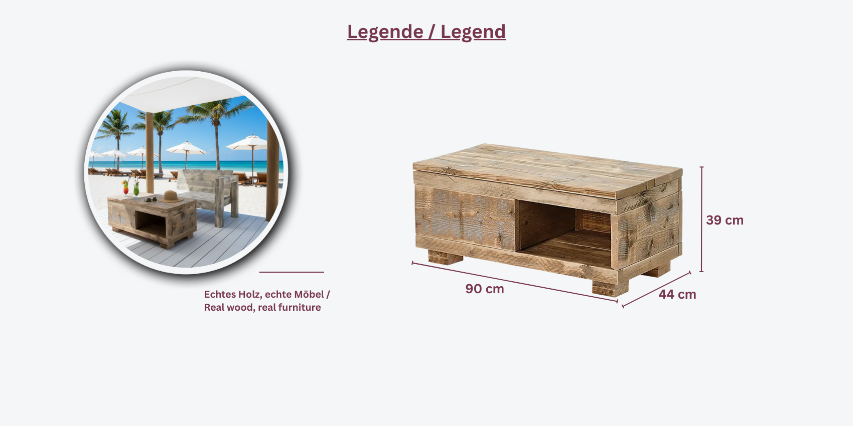- Langlebig: Durch das massive Bauholz und die UV- sowie wetterbeständige Eigenschaft bleibt die Loungetruhe auch bei Außeneinsatz über Jahre hinweg stabil.