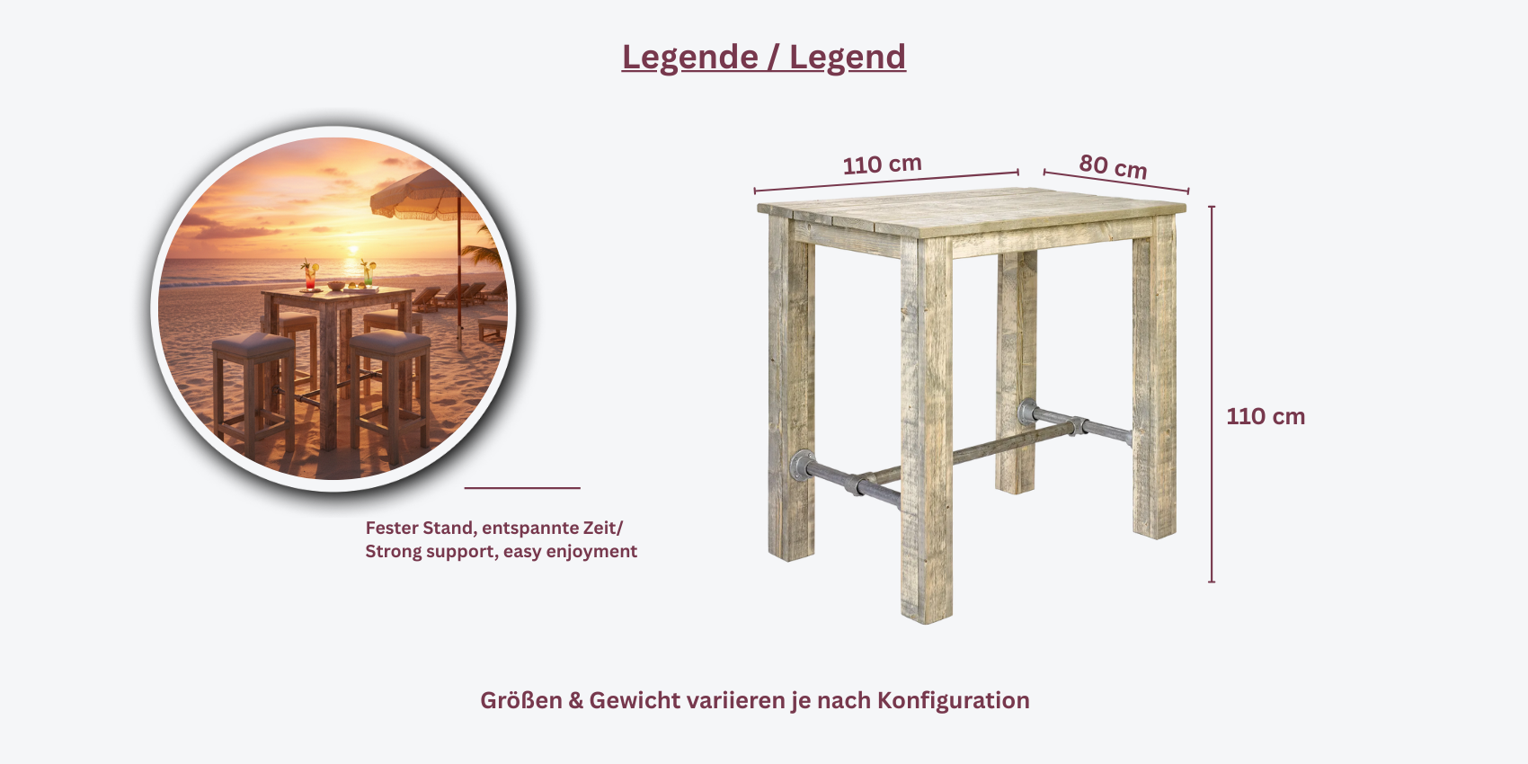 - Stabilität: Die verzinkte Stahlverstrebung sorgt für zusätzliche Festigkeit, was den Stehtisch besonders langlebig und stabil macht.