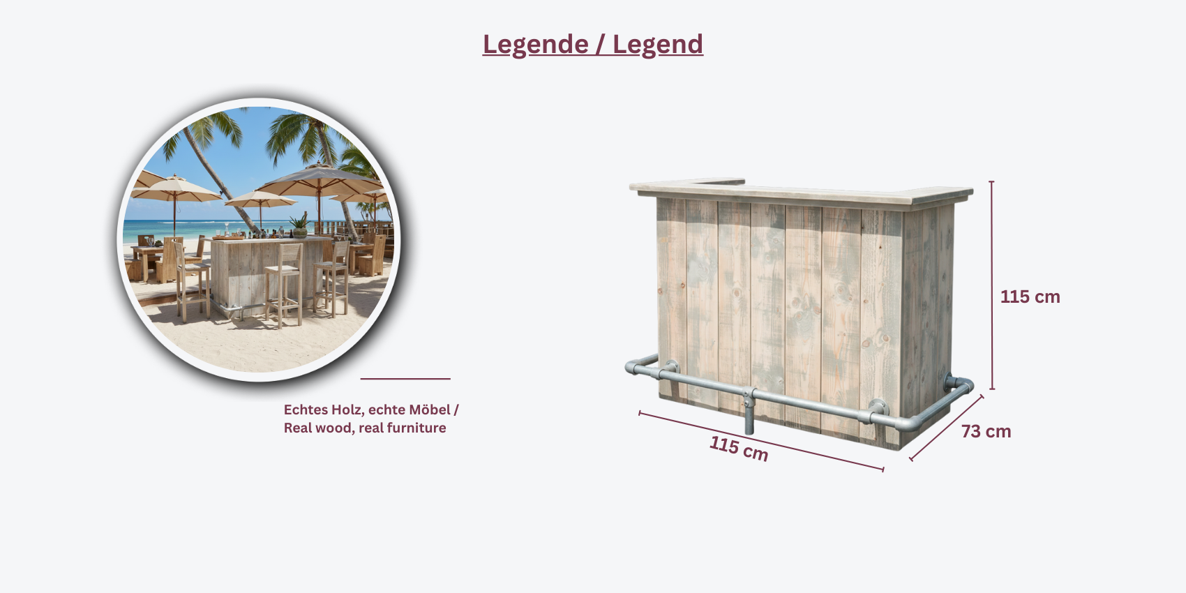 - Maße: Standardgröße von 170 cm x 73 cm x 115 cm, Sondermaße auf Anfrage verfügbar, um die Theke perfekt an Ihre Anforderungen anzupassen.