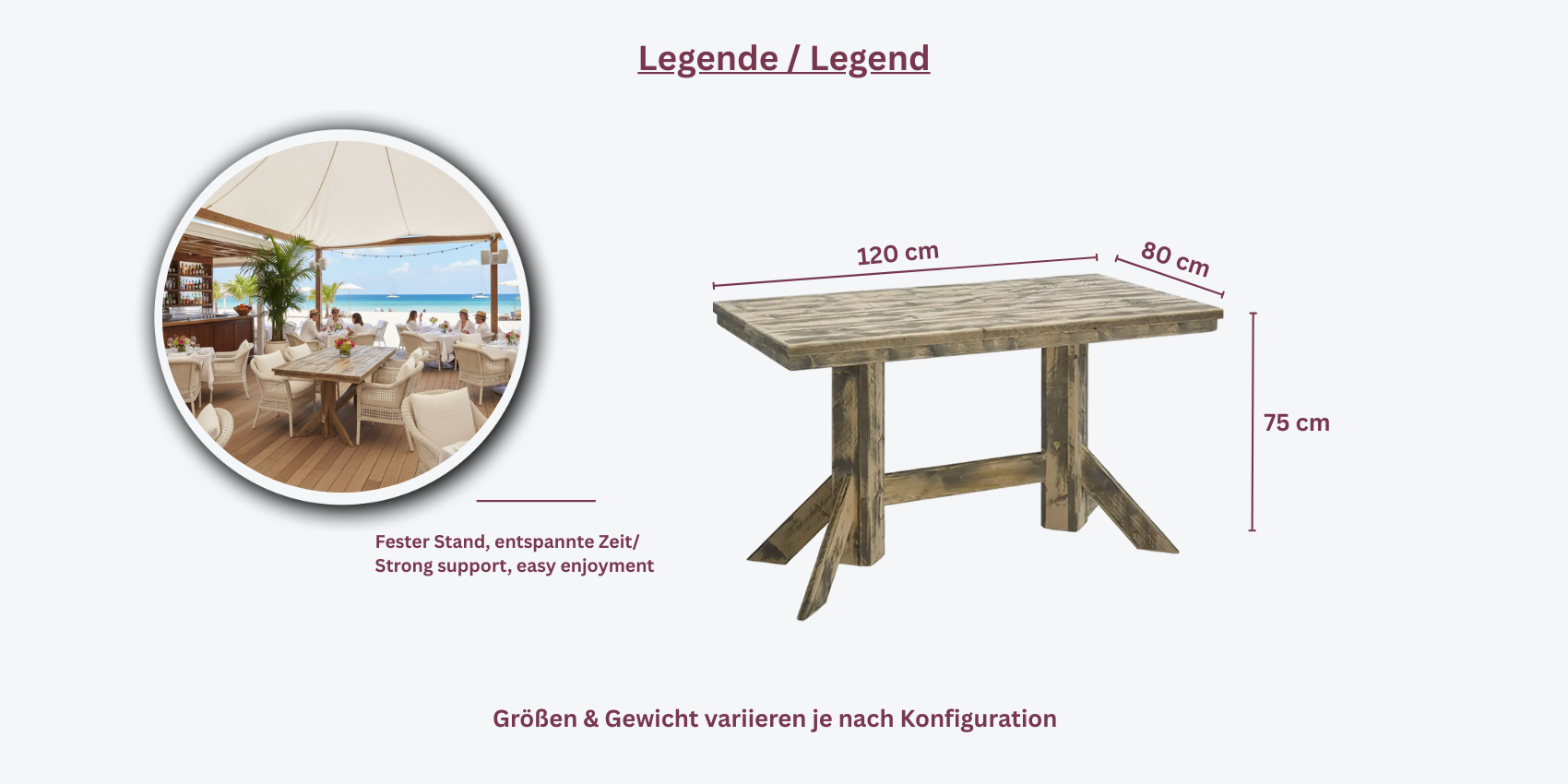 - UV- und wetterbeständig: Der Tisch ist besonders widerstandsfähig gegenüber UV-Strahlen und Witterungseinflüssen, wodurch er eine hervorragende Wahl für den Außeneinsatz ist.