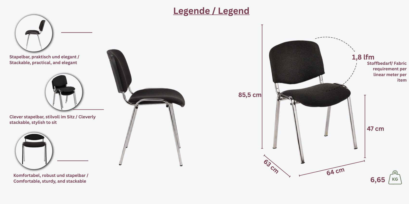 Der Beethoven Chrom Stuhl ist stapelbar und damit besonders platzsparend. Perfekt geeignet für wechselnde Teilnehmerzahlen und moderne Konferenzräume. Setzen Sie auf hochwertige Verarbeitung und ein elegantes Design für Ihre Geschäftsräume.