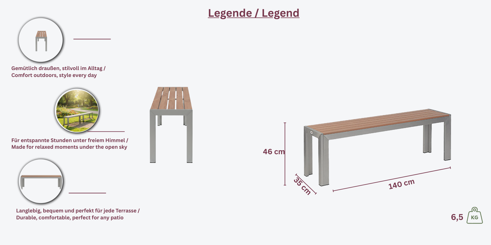 Die Sinon Bank in Teak-Optik lst sich hervorragend mit anderen Gartenmeln kombinieren und ft sich harmonisch in unterschiedliche Einrichtungsstile ein. Sie ist leicht zu reinigen und pflegeleicht, wodurch sie sich ideal f den Einsatz im Freien eignet.