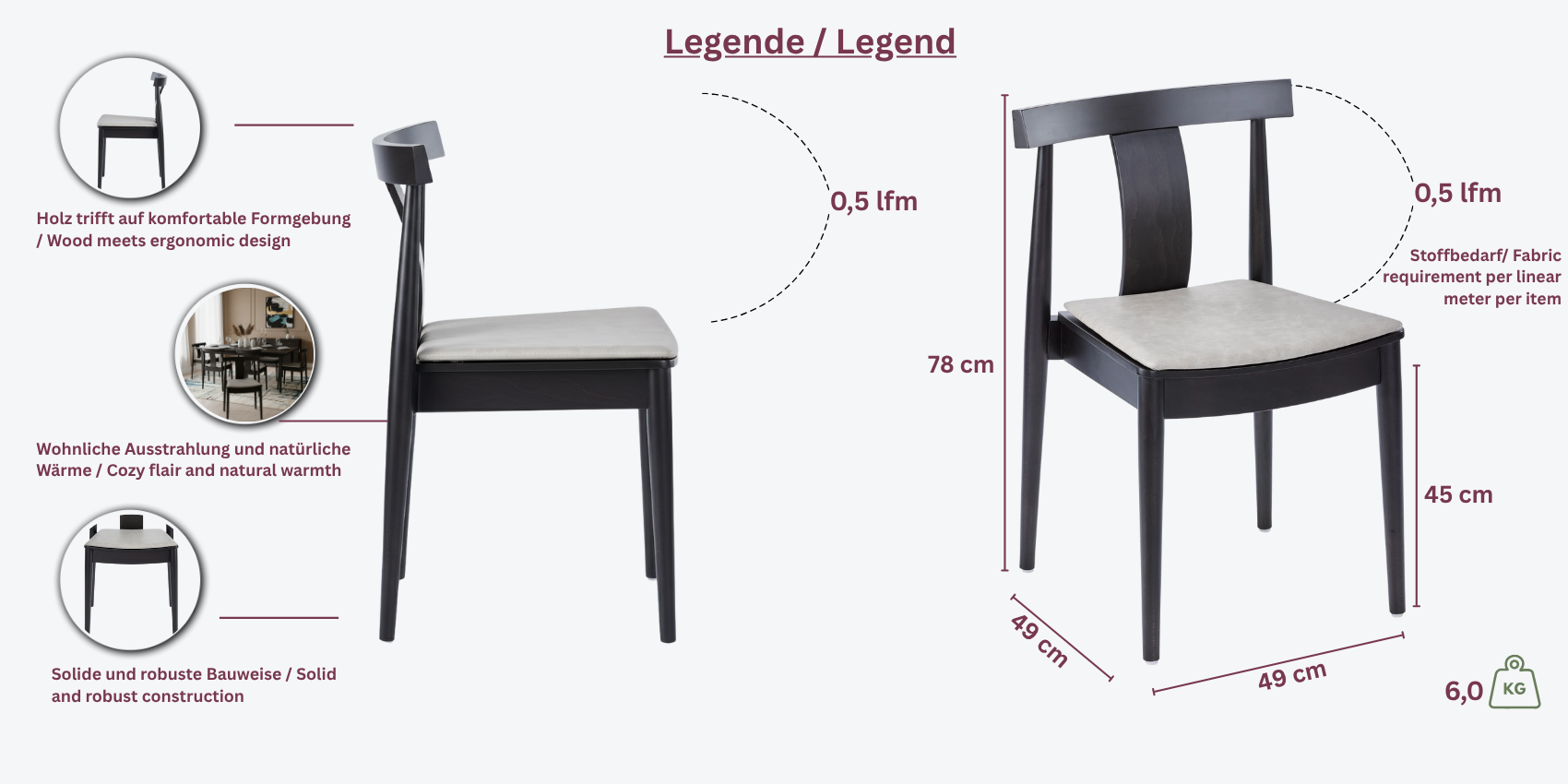 • Sitz: Bequem gepolstert und wahlweise mit Kunstleder oder Bezugsstoff bezogen – individuell anpassbar für jeden Einrichtungsstil.