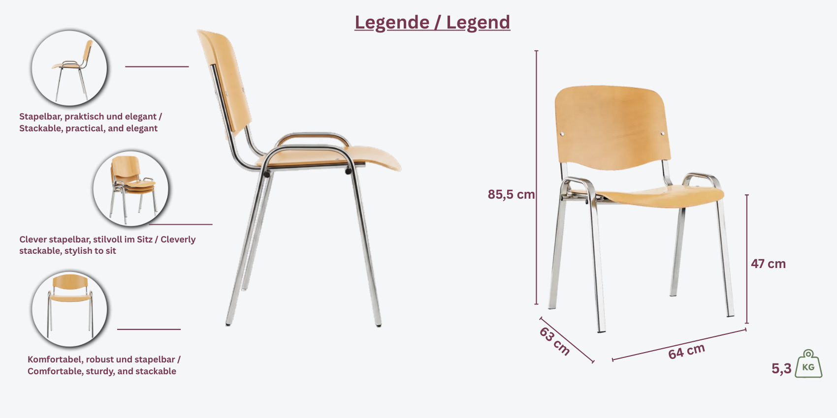 Der Konferenzstuhl Beethoven-Wood überzeugt mit verchromtem Stahlgestell und 7-fach verleimter Buchenholzschale für Sitz und Rücken. Stapelbar, robust und ideal für Konferenzräume und Seminare.