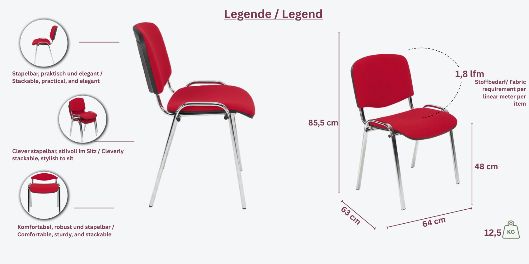 Der Konferenzstuhl Beethoven überzeugt mit pulverbeschichtetem Stahlgestell in Schwarz und Sitz/Rücken wahlweise aus Stoff oder Kunstleder. Stapelbar, robust und ideal für Konferenzräume, Seminare und Schulungen.