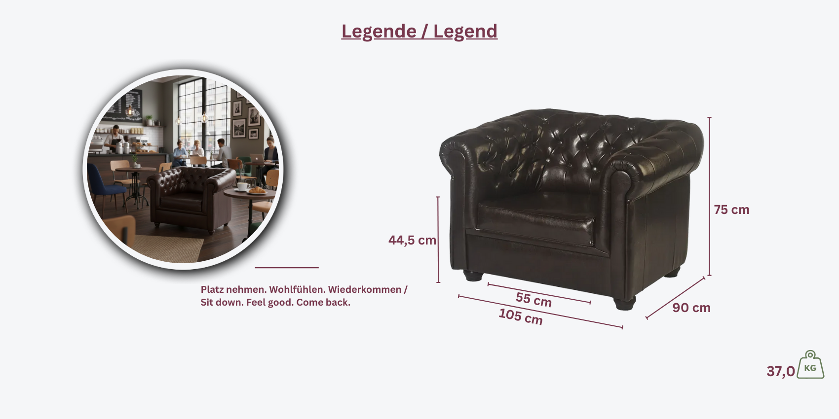 Der Chester-Sessel eignet sich perfekt für gehobene Einrichtungen, in denen Stil und Komfort Hand in Hand gehen.