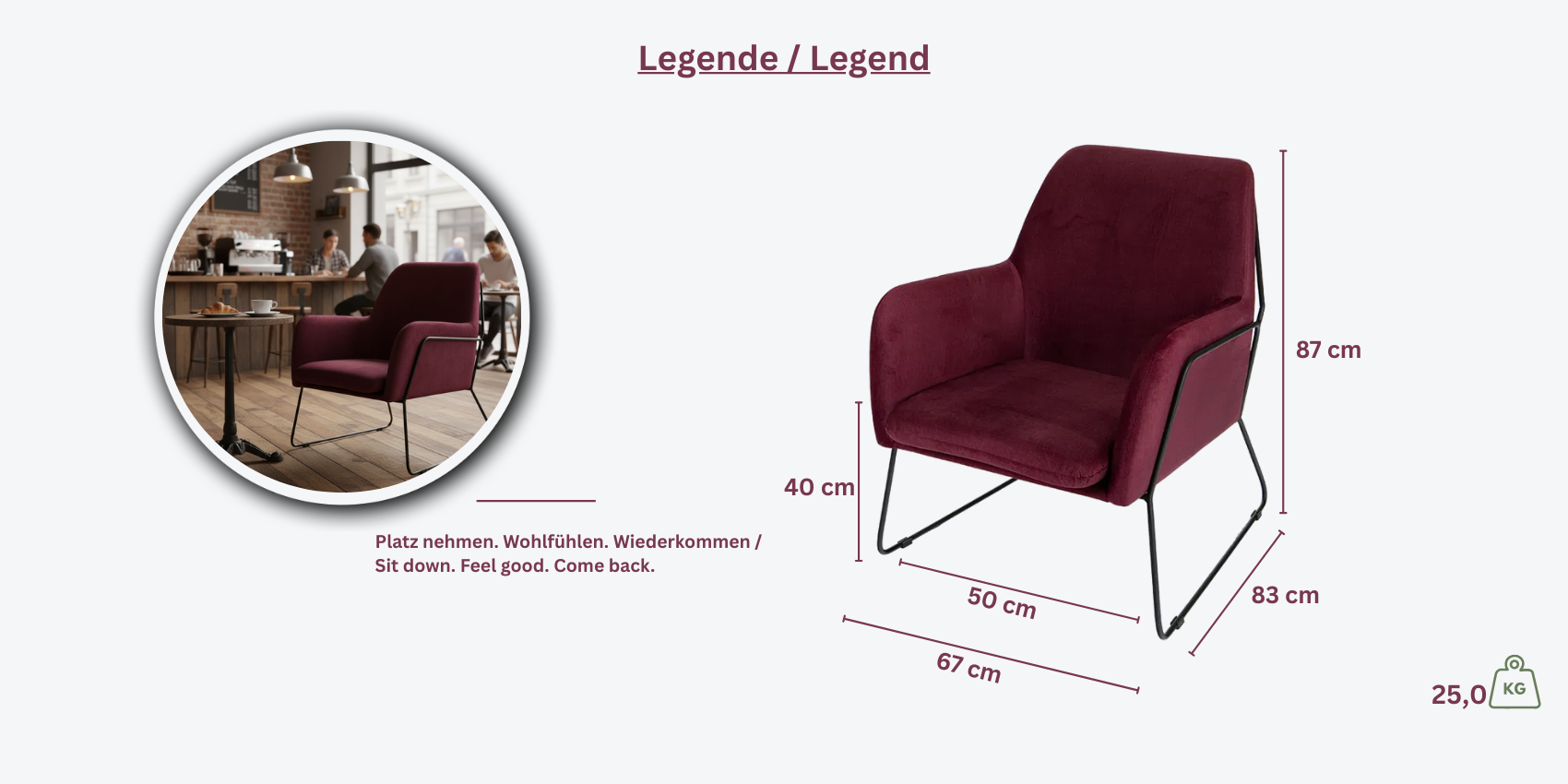 Das pulverbeschichtete Stahlgestell in elegantem Schwarz sorgt nicht nur für Stabilität, sondern unterstreicht auch den zeitgemäßen Charakter des Sessels.