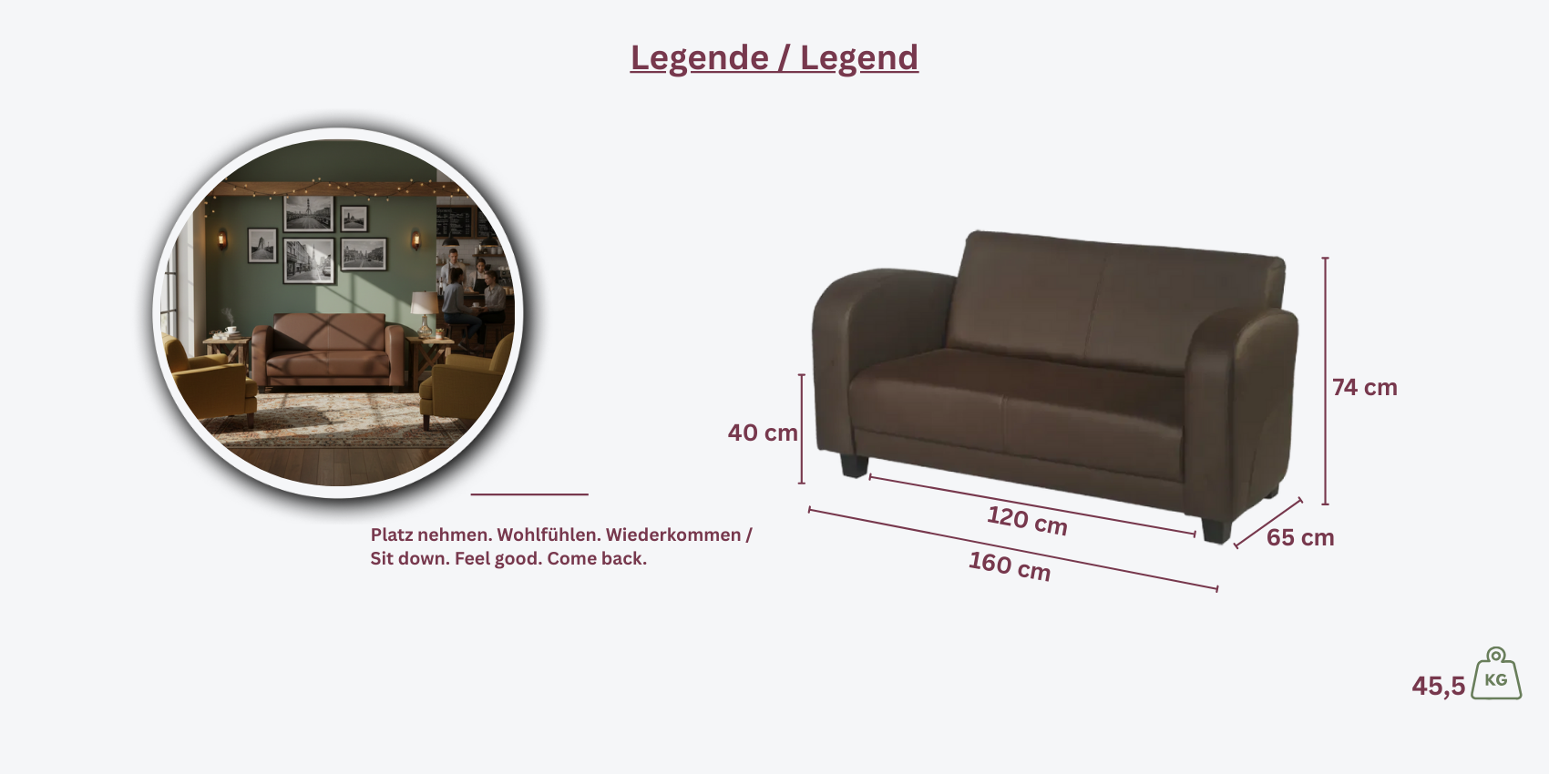 Das Sofa bietet nicht nur eine bequeme Sitzgelegenheit, sondern verleiht dem Raum auch eine stilvolle Note – für Kunden, Gäste oder Besucher mit Anspruch.