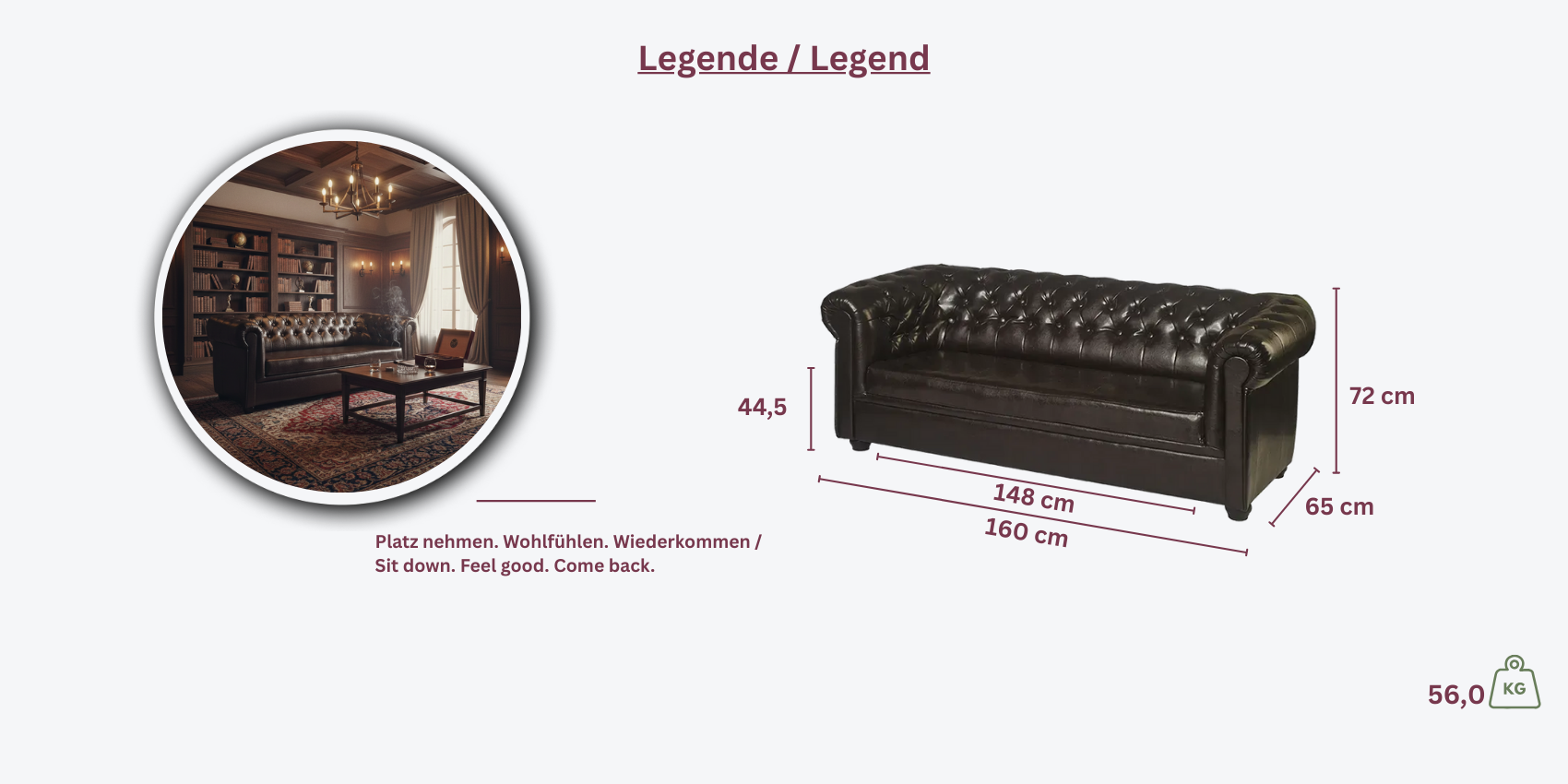Mit großzügiger Sitzfläche und komfortabler Polsterung lädt der Chester 3-Sitzer zum Verweilen ein – ideal für anspruchsvolle Kunden und stilvolle Räume.