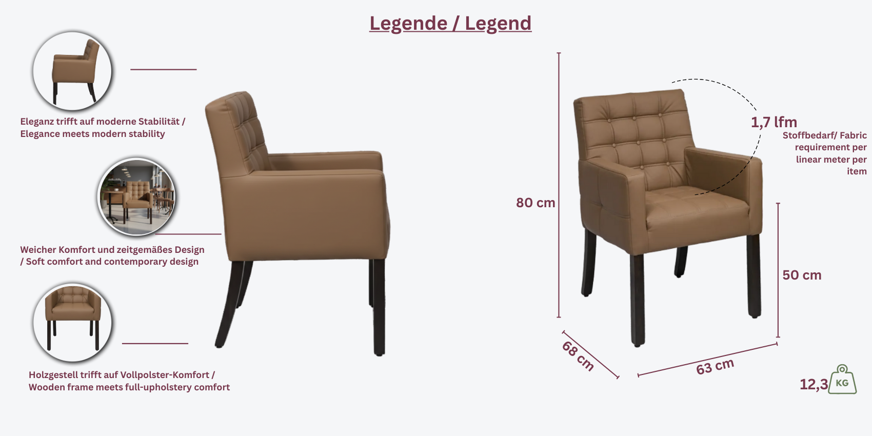 - Besonderheiten: Knopfheftung und Ziernähten, Nosag-Federung