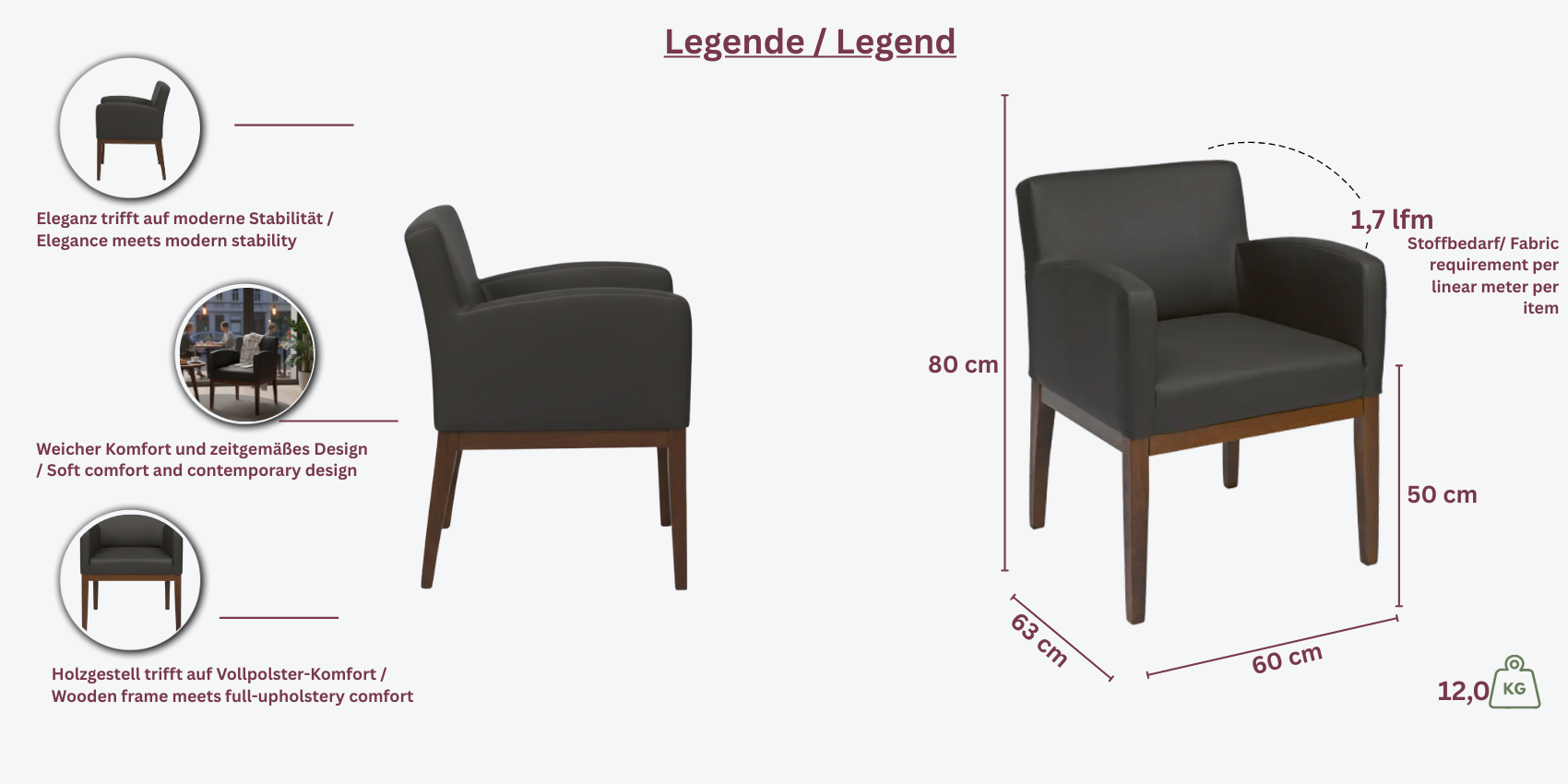 Der Portland Sessel zeichnet sich durch ein Gestell aus Buchen- oder Eichenholz aus, das auf Wunsch in Farben wie Nussbaum, Eiche oder Wenge gebeizt werden kann. Die Sitz- und Rückenflächen sind in Kunstleder, Bezugsstoff oder Echtleder erhältlich, wodurch Sie die Möglichkeit haben, den Sessel an Ihr individuelles Einrichtungskonzept anzupassen. Die Nosag-Federung sorgt für zusätzlichen Komfort und Langlebigkeit.