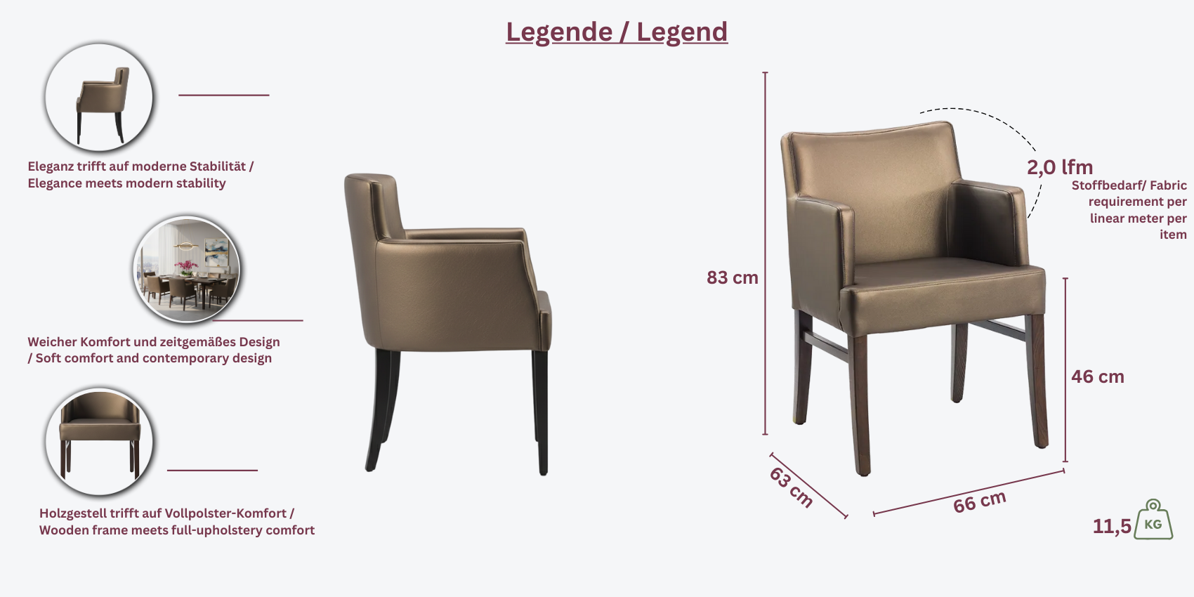 Der Sessel verfügt über ein robustes Gestell aus Buchenholz, das nach Ihren Wünschen in Farben wie Nussbaum, Eiche oder Wenge gebeizt werden kann. Der Sitz und die Rückenlehne sind wahlweise mit Kunstleder, Bezugsstoff oder Echt Leder ausgestattet, alle mit einer eleganten Rautensteppung für zusätzlichen Komfort und ein luxuriöses Aussehen.