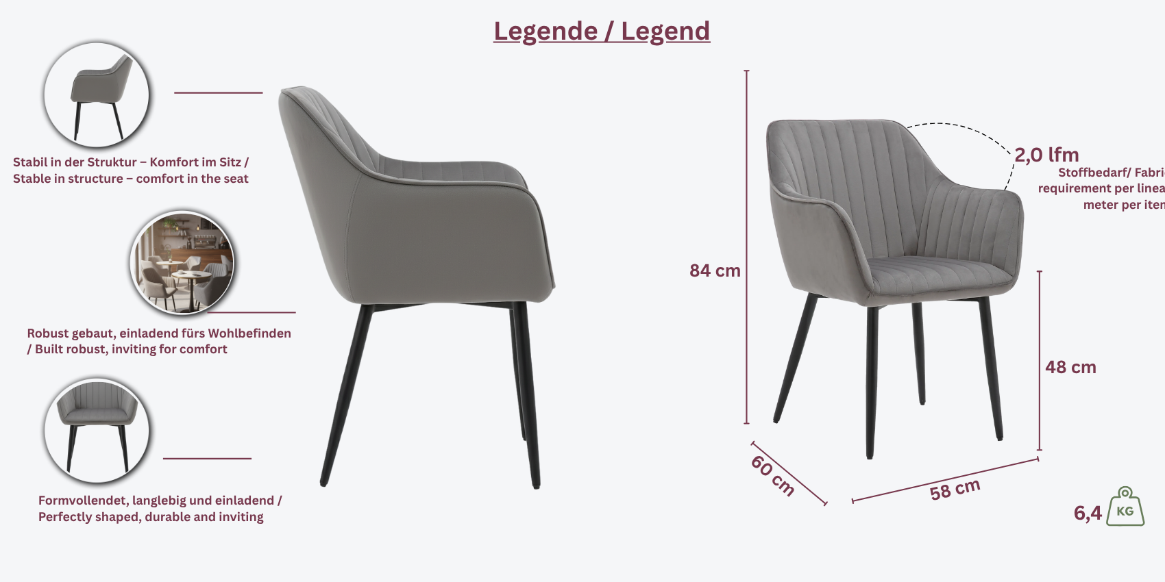 • Sitz/Rücken: Strapazierfähiger Bezugsstoff in dunklem Grau
