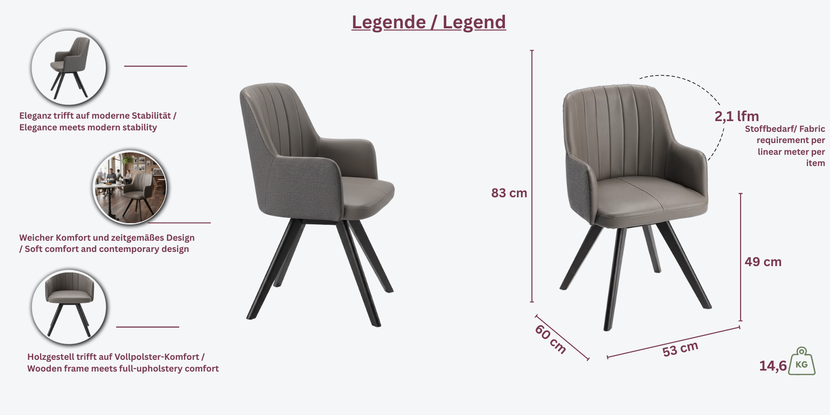 - Sitz/Rücken: Kunstleder, Bezugsstoff oder Echt Leder
