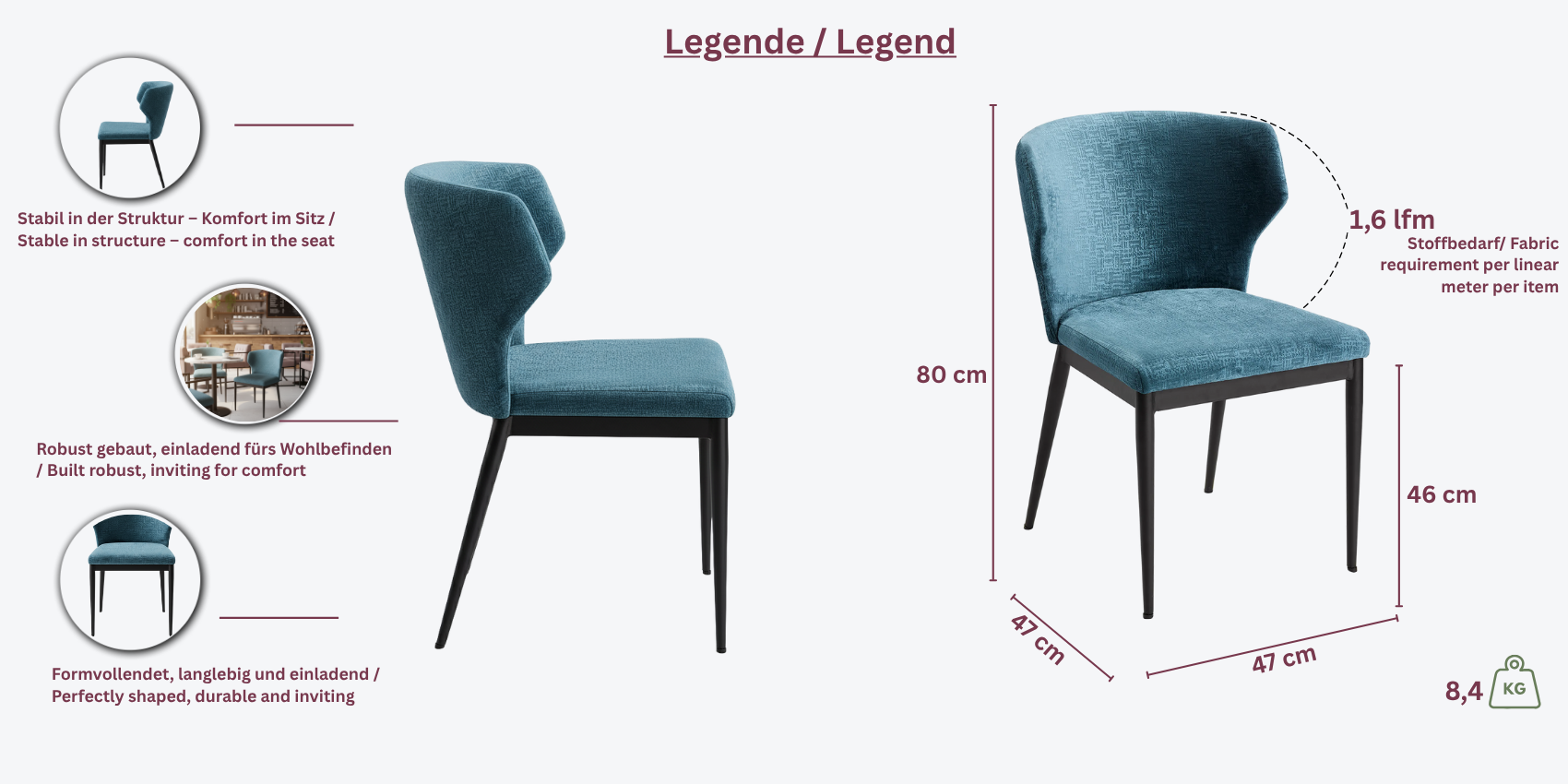• Sitzfläche: 46 x 44 cm