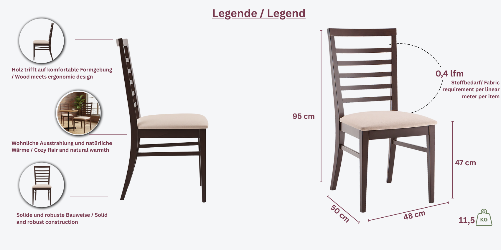 • Gestell: Buchenholz, gebeizt nach Wunsch (z.B. Nussbaum, Eiche oder Wenge)