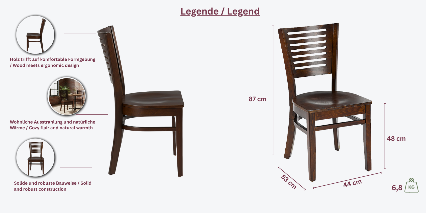 Dieser Stuhl kombiniert ein hochwertiges Buchenholz-Gestell mit einem Multiplex-Sitz und ist ideal für verschiedene Einsatzbereiche.