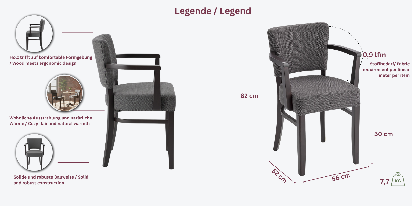 Restaurantstuhl Leah AL2, Buchenholz, Kunstleder, Bezugsstoff, Echtleder, Armlehnen, eckige Armlehnen, Gastronomiestuhl, beizbar, Stuhl fuer Restaurants