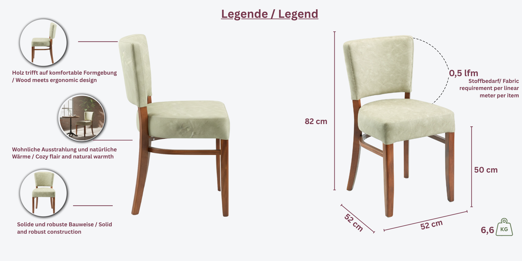 Der Leah-Stuhl zeichnet sich durch sein Buchenholzgestell aus, das in verschiedenen Beiztönen wie Nussbaum, Eiche oder Wenge erhältlich ist. Die Sitz- und Rückenflächen können in Kunstleder, Bezugsstoff oder Echtleder gewählt werden, um Ihren individuellen Anforderungen gerecht zu werden.