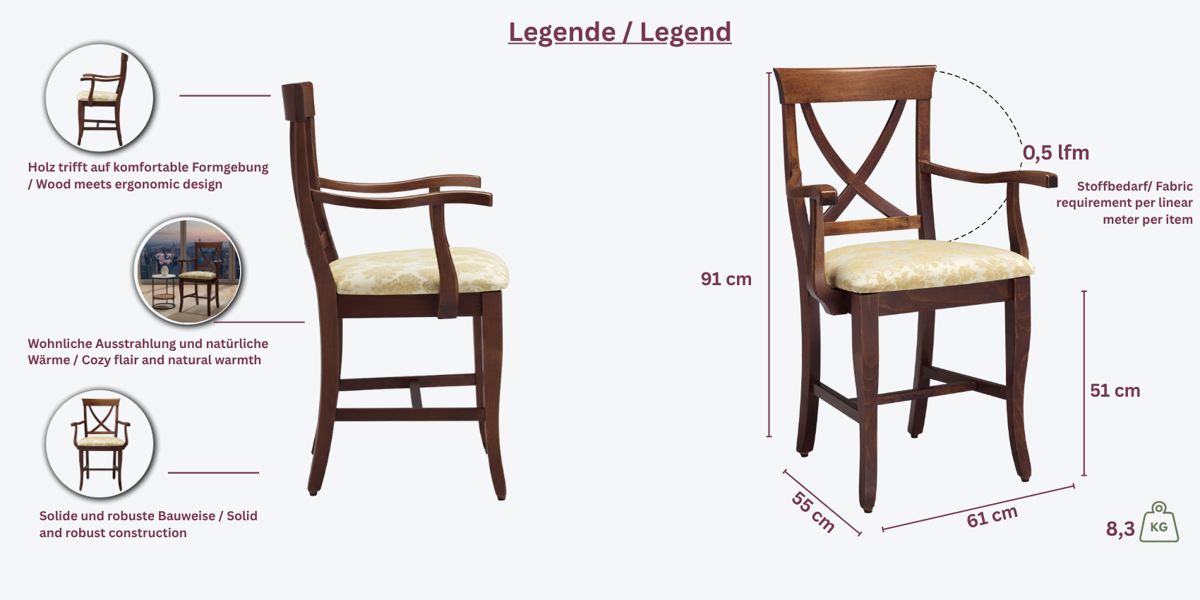 Der Malta AL bietet nicht nur ein ansprechendes Design, sondern auch zusätzlichen Komfort durch seine Armlehnen. Wie der Standard Malta-Stuhl kann auch dieser Stuhl individuell angepasst werden, um Ihrem Einrichtungskonzept zu entsprechen.