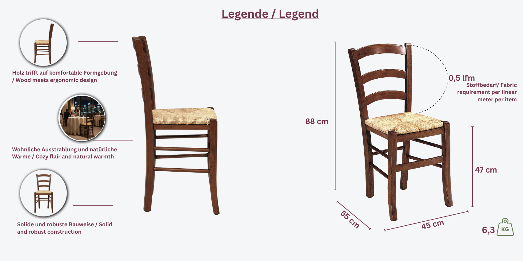 Der Paterna-Stuhl bietet eine Vielzahl von Anpassungsoptionen, um Ihre spezifischen Anforderungen zu erfüllen. Wählen Sie die passende Holzbeize und den gewünschten Sitzbezug für ein individuell abgestimmtes Design.